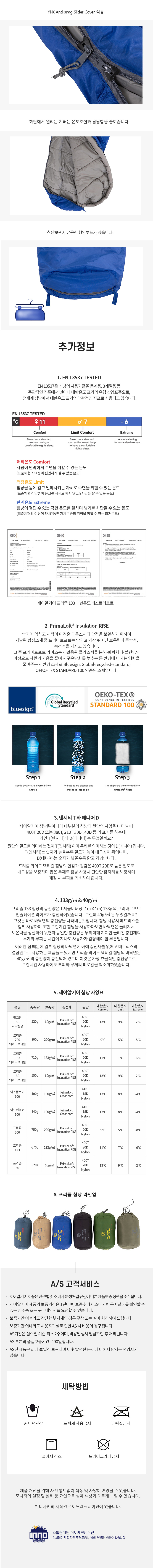 • 프리즘 133 프리마로프트 침낭 (로얄블루)