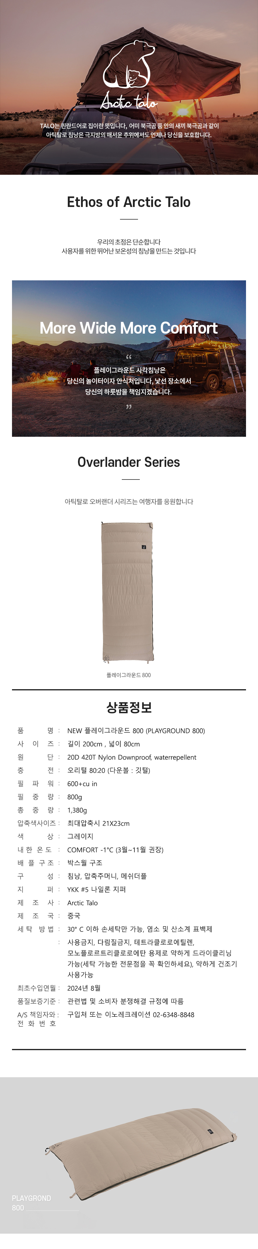 [아틱탈로(Arctic talo)] 뉴 플레이그라운드 800 다운 사각침낭