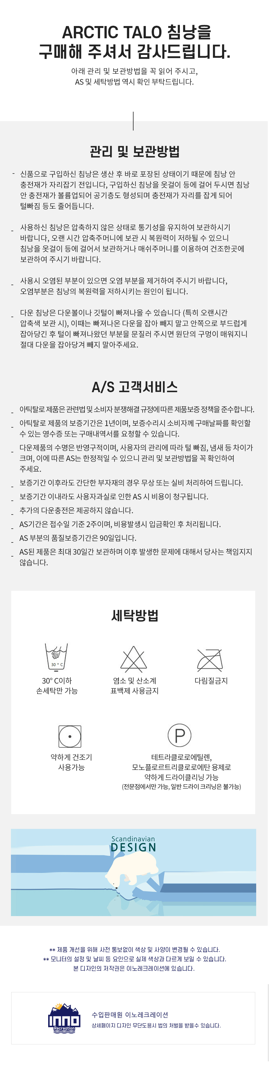 세탁방법 및 주의사항 다운전용세제 사용 중성세제사용불가