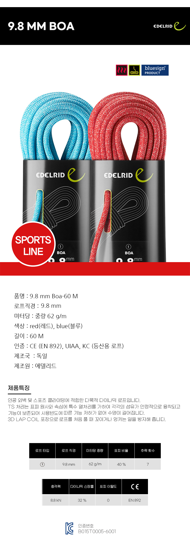 ABOUT Edelrid... EDELRID는 1863 년에 줄리어스 EDELMANN 칼 Ridder의에 의해 설립되었습니다. 이후 1953년 로프를 발명하고 생산, 현재까지 이어오고 있습니다.에델리드(EDELRID)는 세계적으로 사랑받고 있는 독일의 등반장비 브랜드입니다. 대부분의 제품이 독일과 유럽, 때 많이 사용되고 있으며 발수,투습력이 우수하여 세계 각국 원정국제산악연맹의 인증을 받아서 절대적인 신뢰를 제공합니다. 등반로프는 클라이밍과 고산 등반 대로부터 극찬을 받고 있는 품목입니다