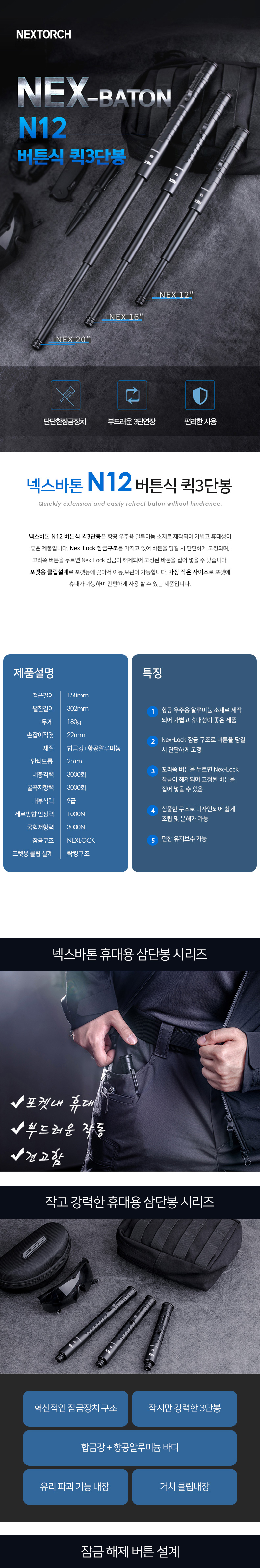 [넥스토치(Nextorch)] (N12) 넥스바톤 버튼식 퀵 뉴삼단봉