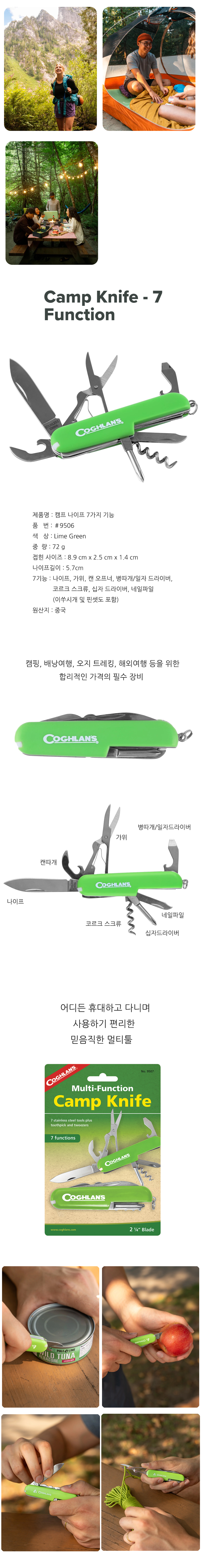 [코글란(Coghlans)] (9507) 캠프 나이프 7가지 기능